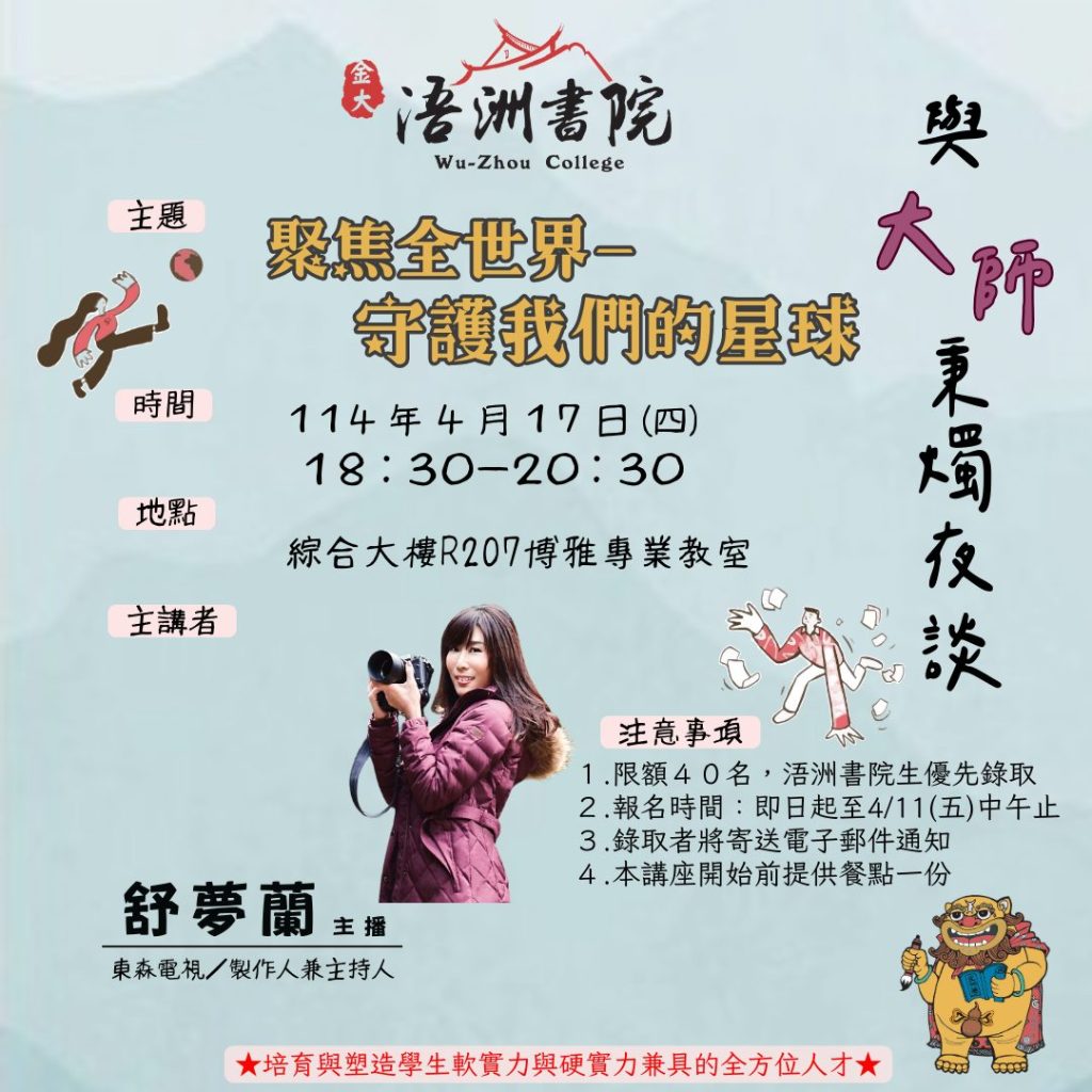 類型:與大師秉燭夜談 日期:2025年4月17日(四) 時間:18:30-20:30 地點:綜合大樓