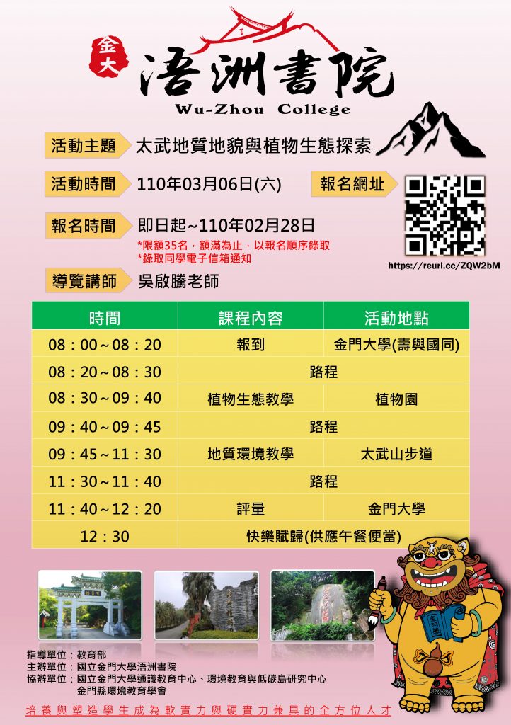 110/03/06(六)金門學概論暨環境教育活動:太武地質地貌與植物生態探索 繼續閱讀 »