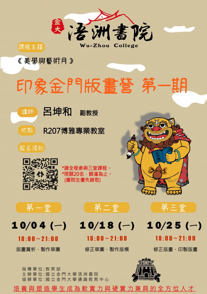 【浯洲書院】美學與藝術月系列講座:《印象金門 版畫營第一期》 報名開始 日期:110/10/04(一