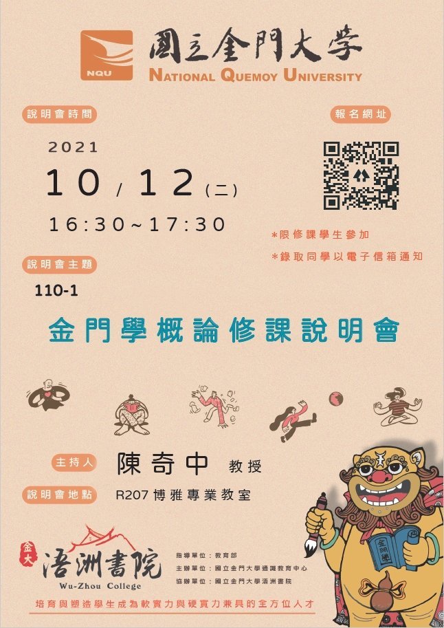 110/10/12(二)110-1金門學概論修課說明會 繼續閱讀 »