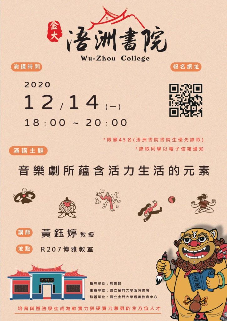 109/12/14(一)金大浯洲書院美學與藝術月系列講座-音樂劇所蘊含活力生活的元素 繼續閱讀 »